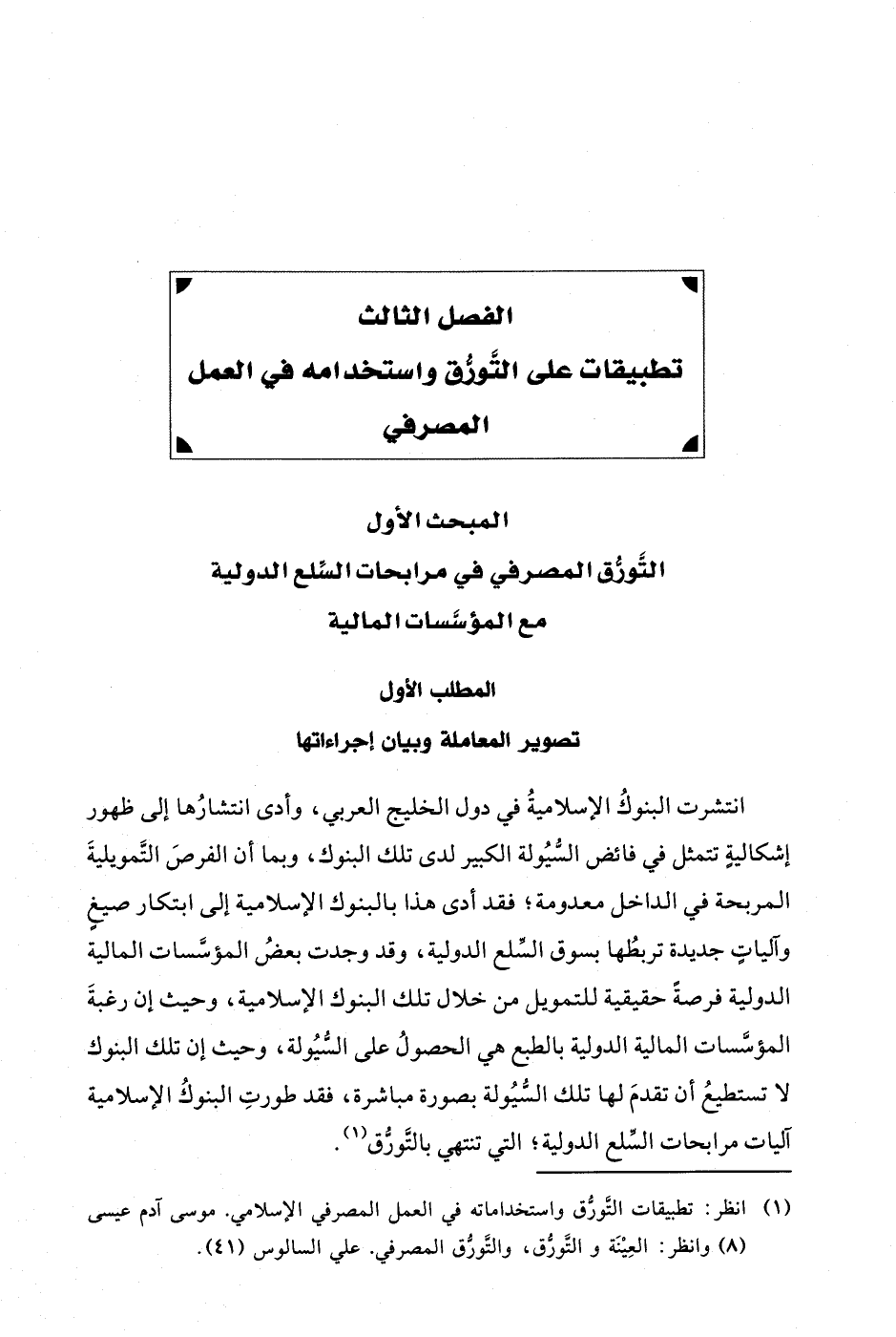 (¬1) انظر: تطبيقات التُّورُّق واستخداماته في العمل المصرفي الإسلامي. موسى آدم عيسى (8) وانظر: العِيْنَة والتَّورُّق، والتَّورُّق المصرفي. علي السالوس (41).