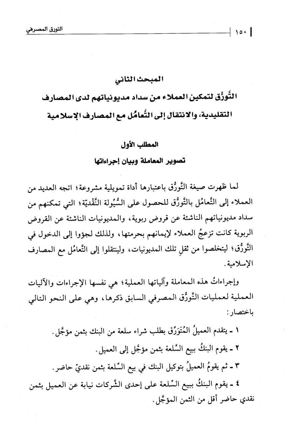 المبحث الثاني التَّورُّق لتمكين العملاء من سداد مديونياتهم لدى المصارف التقليدية، والانتقال إلى التَّعامُل مع المصارف الإسلامية