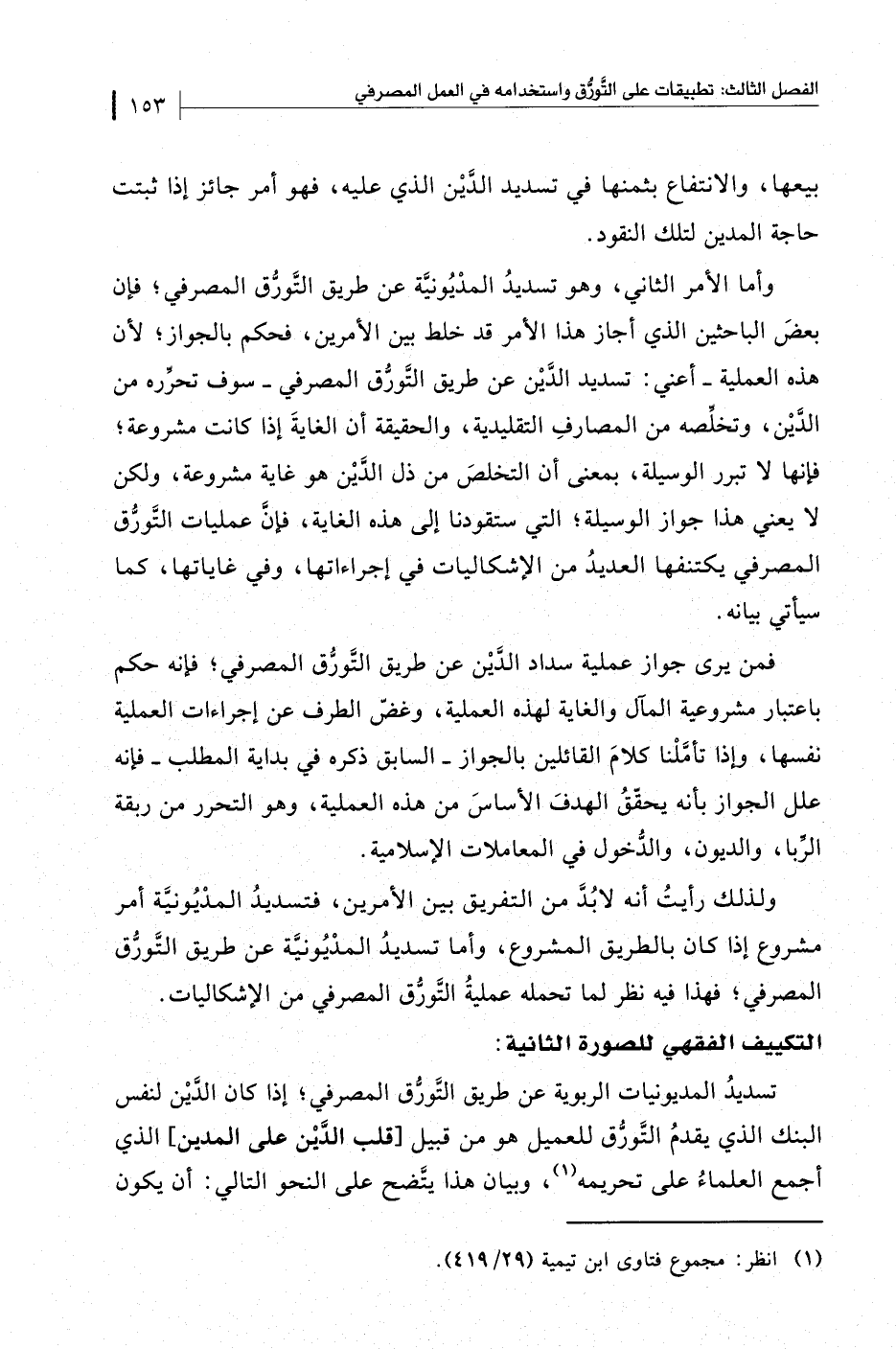 ولذلك رأيتُ أنه لابدَّ من التفريق بين الأمرين، فتسديدُ المدْيُونيَّة أمر مشروع إذا كان بالطريق المشروع، وأما تسديدُ المديُونيَّة عن طريق التَّورُّق المصرفي، فهذا فيه نظر لما تحمله عمليةُ التَّورُّق المصرفي من الإشكاليات.