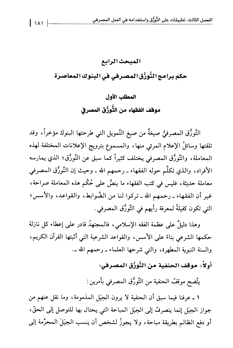أولًا: موقف الحنفية من التَّورُّق المصرفي: