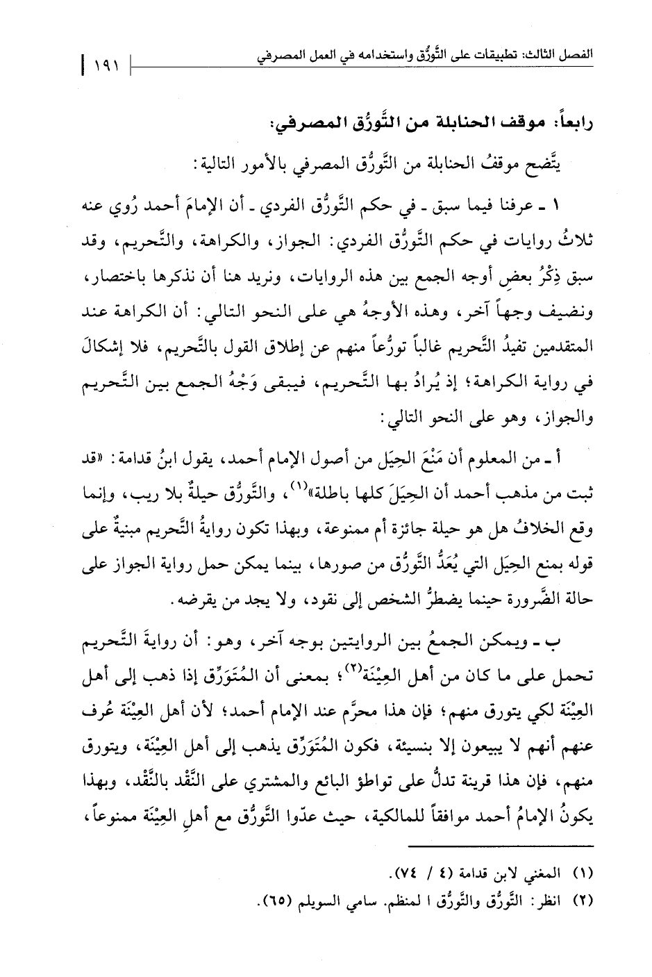 رابعًا: موقف الحنابلة من التَّورُّق المصرفي: