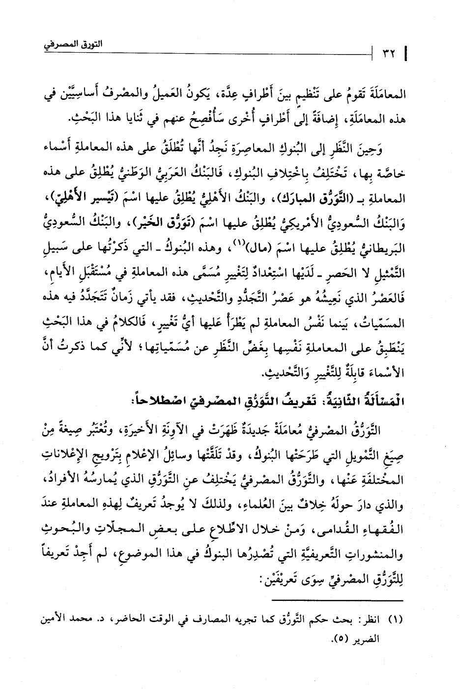 (¬1) انظر: بحث حكم التَّورُّق كما تجريه المصارف في الوقت الحاضر، د. محمد الأمين الضرير (5).