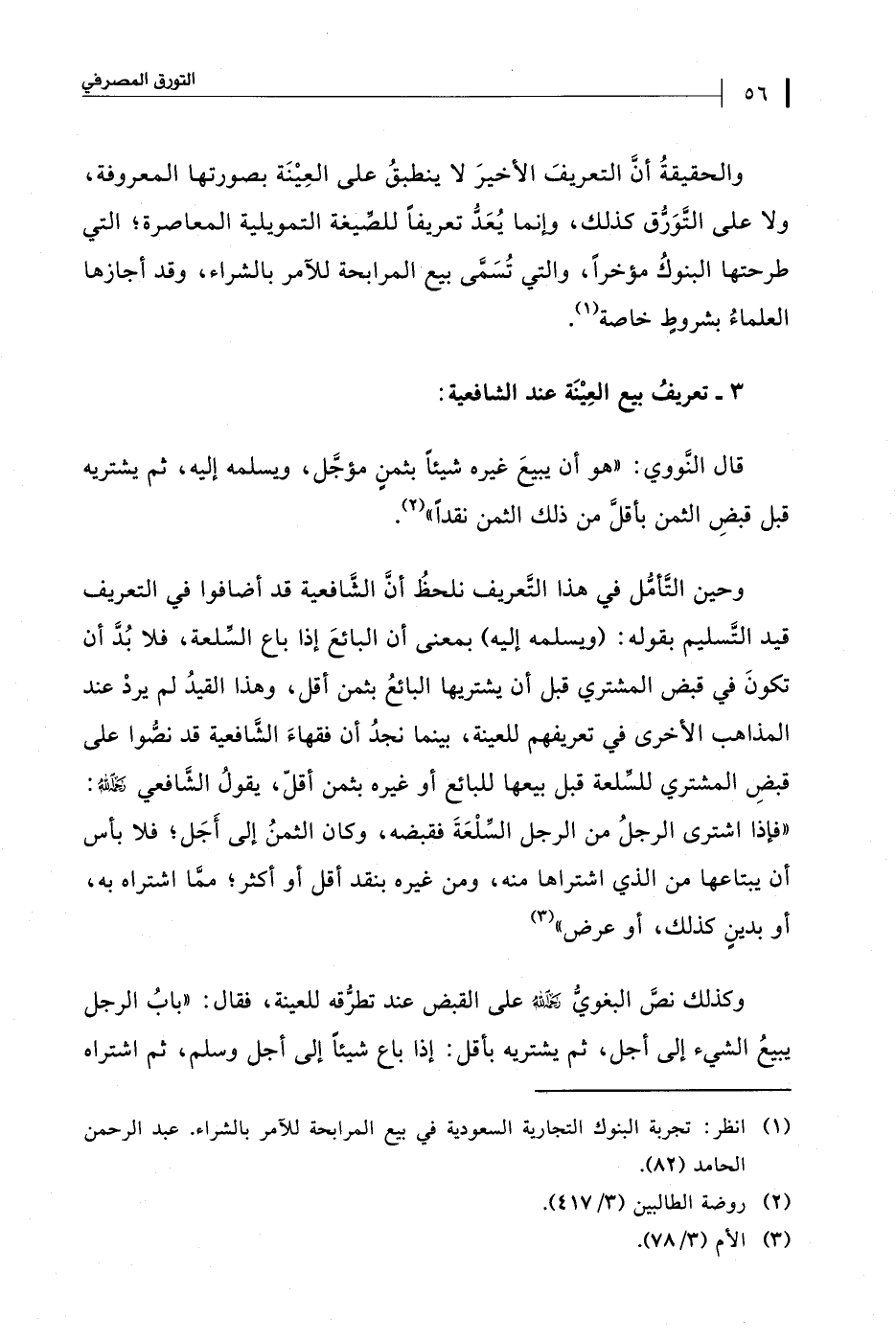 (¬1) انظر: تجربة البنوك التجارية السعودية في بيع المرابحة للآمر بالشراء. عبد الرحمن الحامد (82).