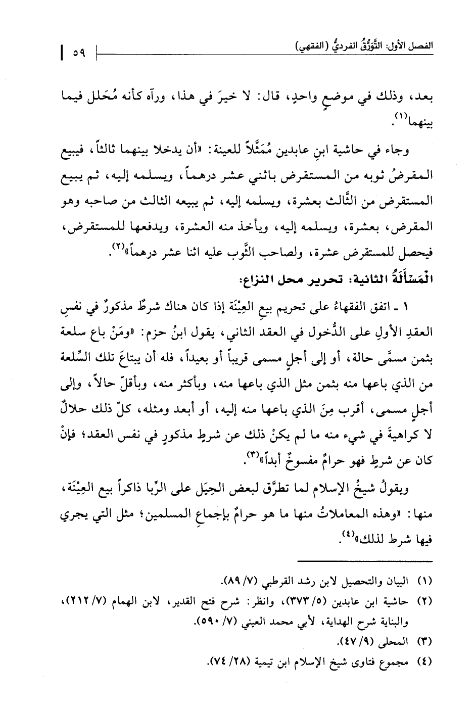 ويقولُ شيخُ الإسلام لما تطرَّق لبعض الحِيَل على الرِّبا ذاكرًا بيع العِيْنَة، منها: "وهذه المعاملاتُ منها ما هو حرامٌ بإجماعِ المسلمين، مثل التي يجري فيها شرط لذلك" (¬4).