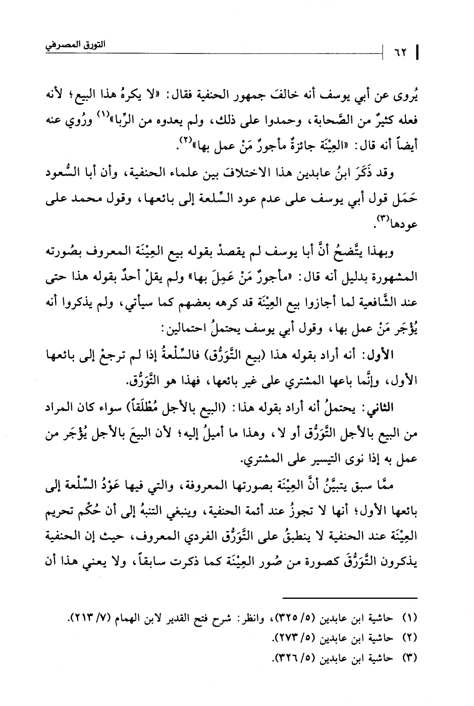 الأول: أنه أراد بقوله هذا (بيع التَّوَرُّق) فالسِّلْعةُ إذا لم ترجعْ إلى بائعها الأول، وإنَّما باعها المشتري على غير بائعها، فهذا هو التَّوَرُّق.