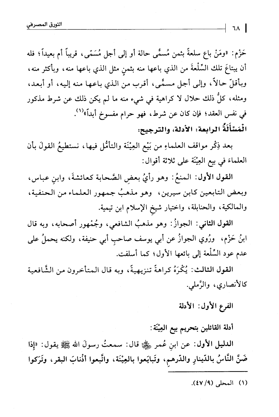 أدلة القائلين بتحريم بيع العِيْنَة:
