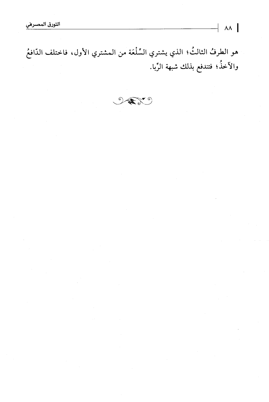 هو الطرفُ الثالثُ، الذي يشتري السِّلْعَة من المشتري الأول، فاختلف الدّافعُ والآخذُ، فتندفع بذلك شبهة الرِّبا.
