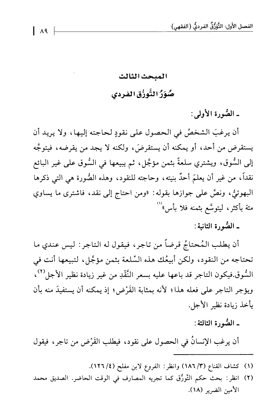 (¬2) انظر: بحث حكم التَّورُّق كما تجريه المصارف في الوقت الحاضر. الصديق محمد الأمين الضرير (18).