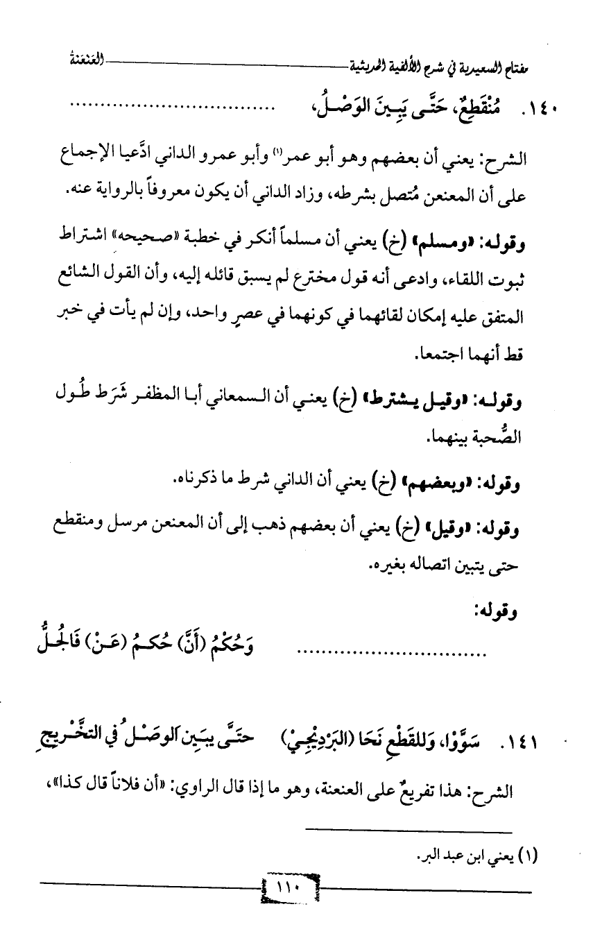 141 - سَوَّوْا، وَللقَطْعِ نَحَا (البَرْدِيْجِيْ) ... حَتَّى يَبِينَ الوَصْلُ في التَّخْرِيج