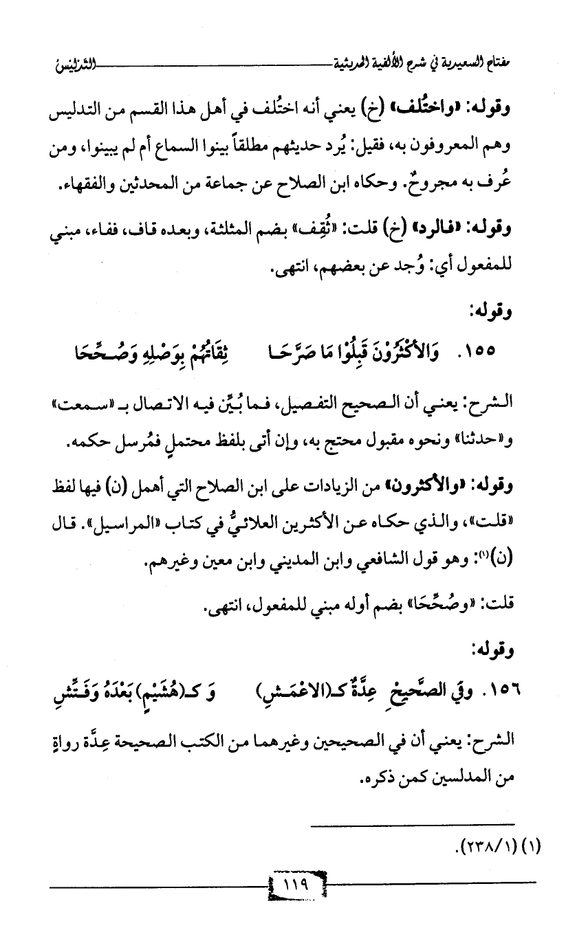 156 - وَفي الصَّحِيْحِ عِدَّةٌ كـ (الاعْمَشِ) ... وَكـ (هُشَيْمٍ) بَعْدَهُ وَفَتِّش