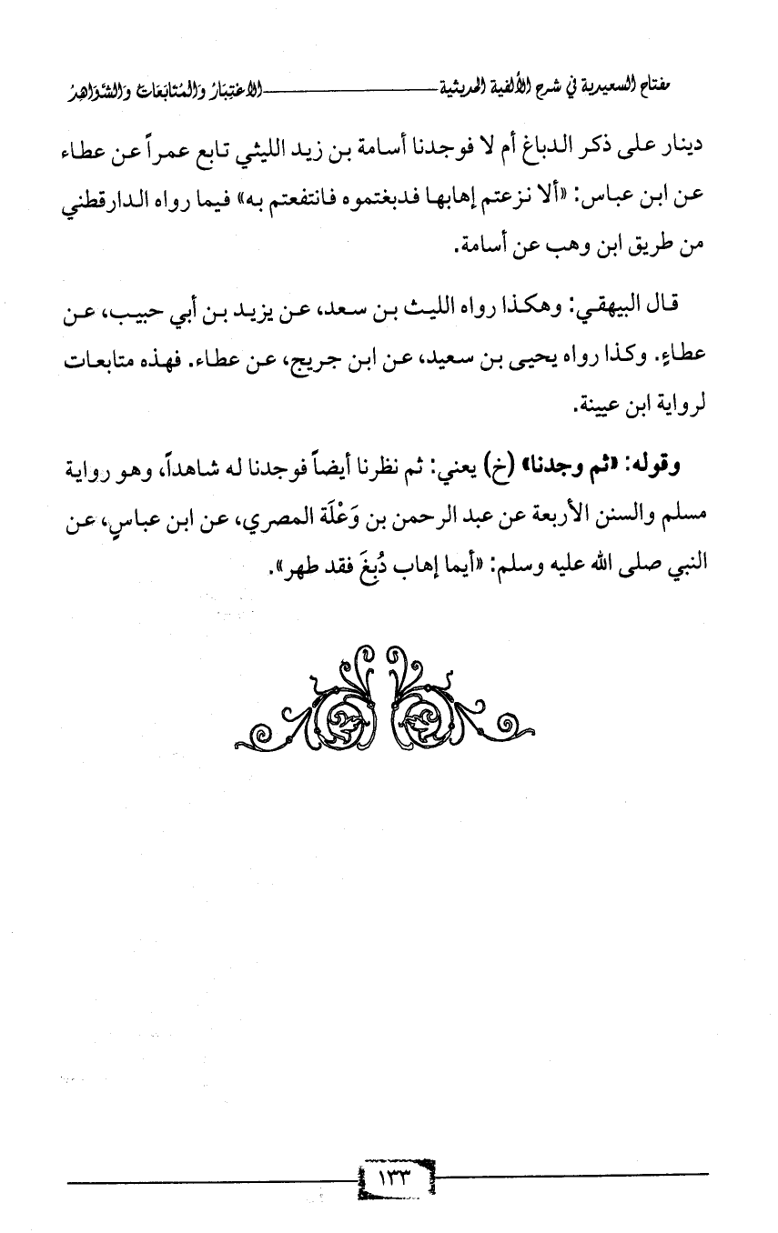 دينار على ذكر الدباغ أم لا فوجدنا أسامة بن زيد الليثي تابع عمراً عن عطاء عن ابن عباس: «ألا نزعتم إهابها فدبغتموه فانتفعتم به» فيما رواه الدارقطني من طريق ابن وهب عن أسامة.
