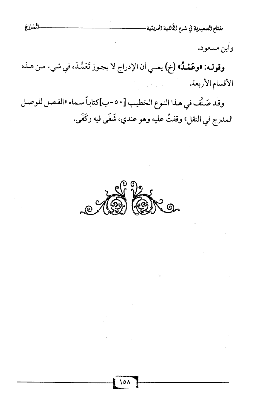 وقد صَنَّف في هذا النوع الخطيب [50 - ب] كتاباً سماه «الفصل للوصل المدرج في النقل» وقفتُ عليه وهو عندي، شَفَى فيه وكَفَى.
