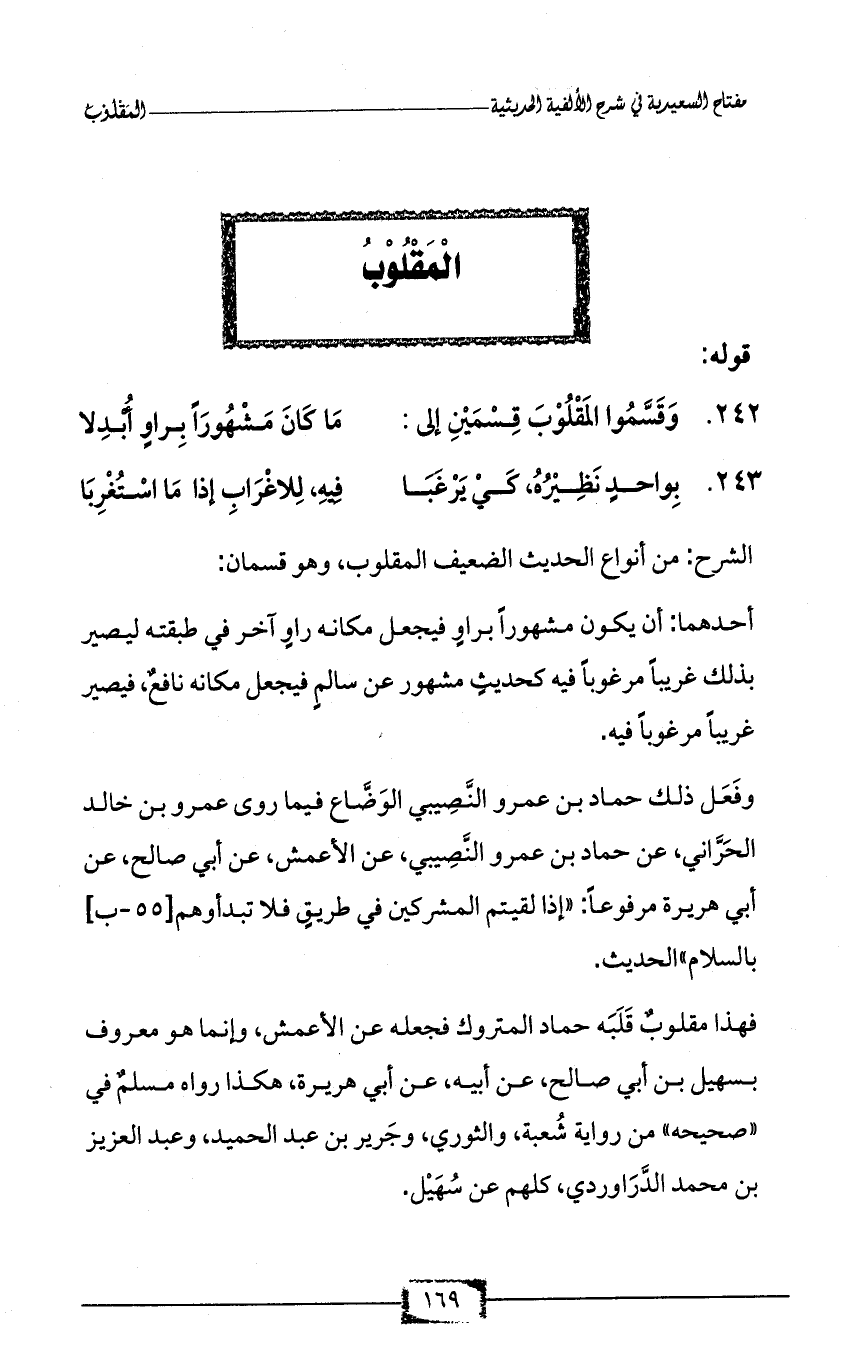 الشرح: من أنواع الحديث الضعيف المقلوب، وهو قسمان: