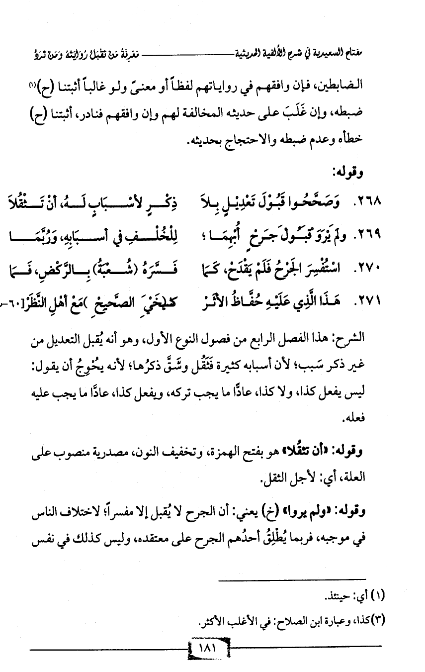 268 - وَصَحَّحُوا قَبُوْلَ تَعْدِيْلٍ بِلاَ ... ذِكْرٍ لأسْبَابٍ لَهُ، أنْ تَثْقُلاَ