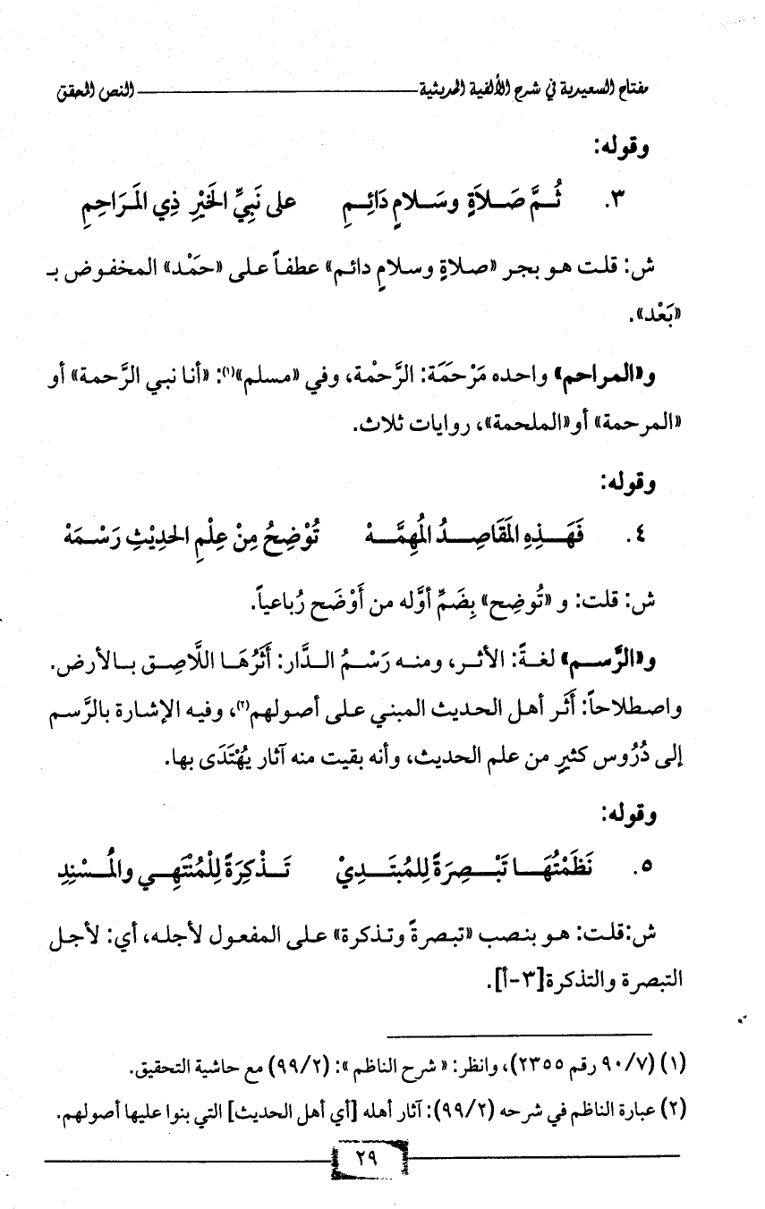 5 - نَظَمْتُهَا تَبْصِرَةً لِلمُبتَدِيْ ... تَذْكِرَةً لِلْمُنْتَهِي والْمُسْنِد