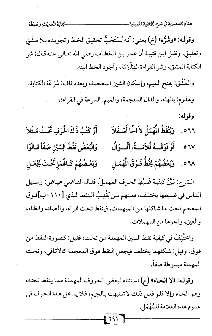 567 - أَوْ فَوْقَهُ قُلاَمَةً، أَقْوَالُ ... وَالْبَعْضُ نَقْطَ الِسّيْنِ صَفّاً قالَوْا