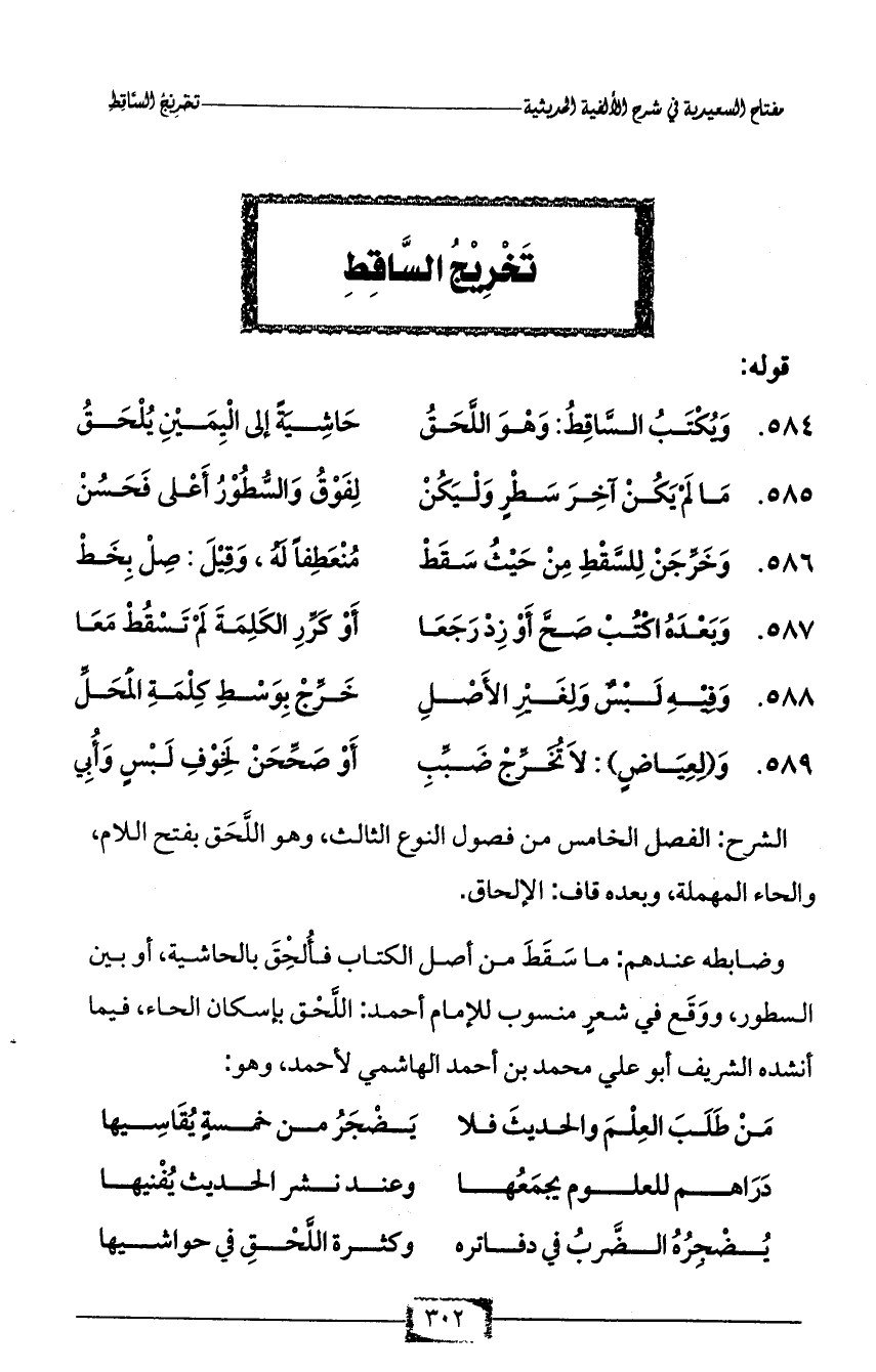 وضابطه عندهم: ما سَقَطَ من أصل الكتاب فأُلْحِقَ بالحاشية، أو بين السطور، ووَقَع في شعرٍ منسوب للإمام أحمد: اللَّحْق بإسكان الحاء، فيما أنشده الشريف أبو علي محمد بن أحمد الهاشمي لأحمد، وهو: