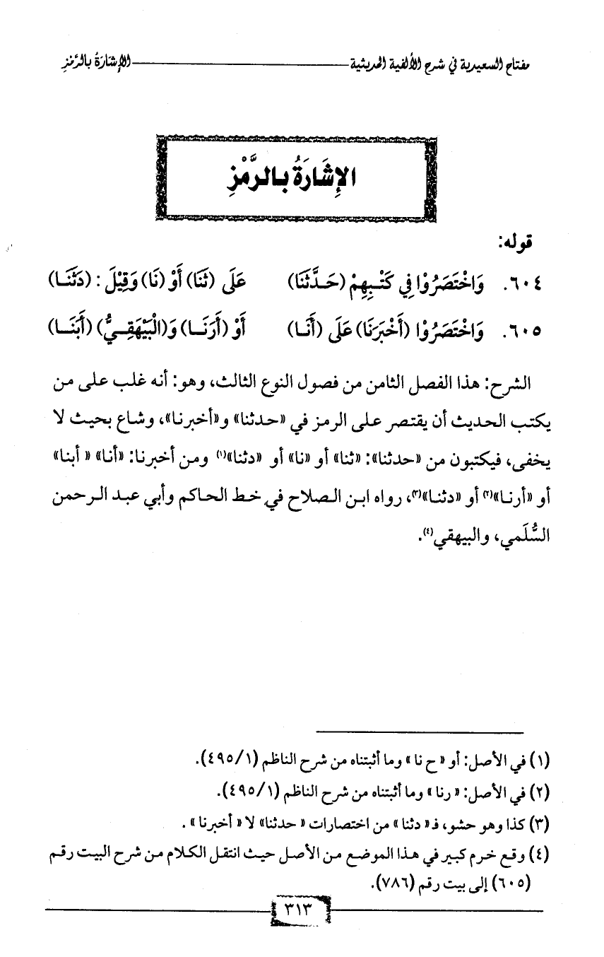 (¬4) وقع خرم كبير في هذا الموضع من الأصل حيث انتقل الكلام من شرح البيت رقم (605) إلى بيت رقم (786).