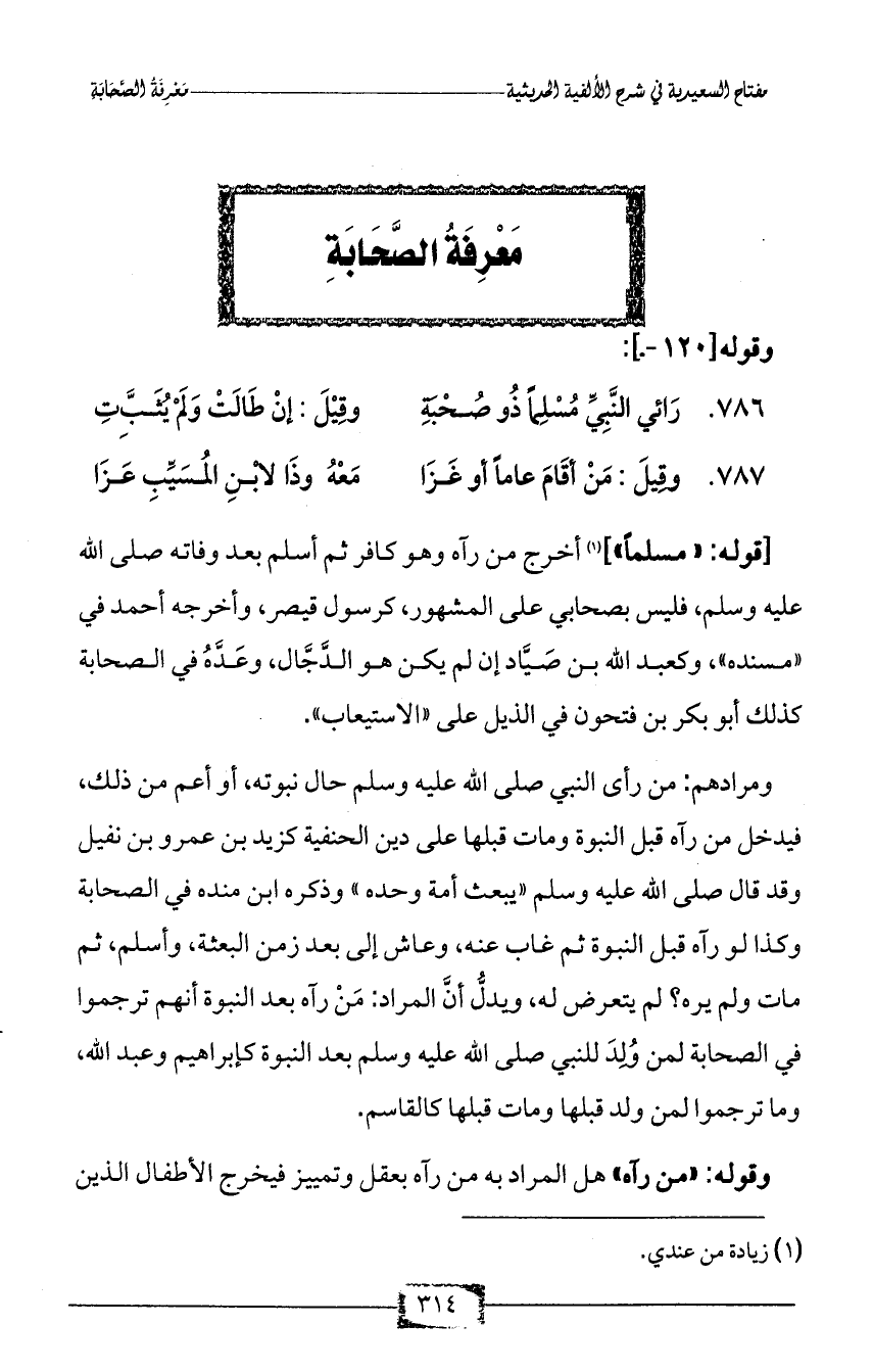 786 - رَائي النَّبِيِّ مُسْلِماً ذُو صُحْبَةِ ... وقِيْلَ: إنْ طَالَتْ وَلَمْ يُثَبَِّت