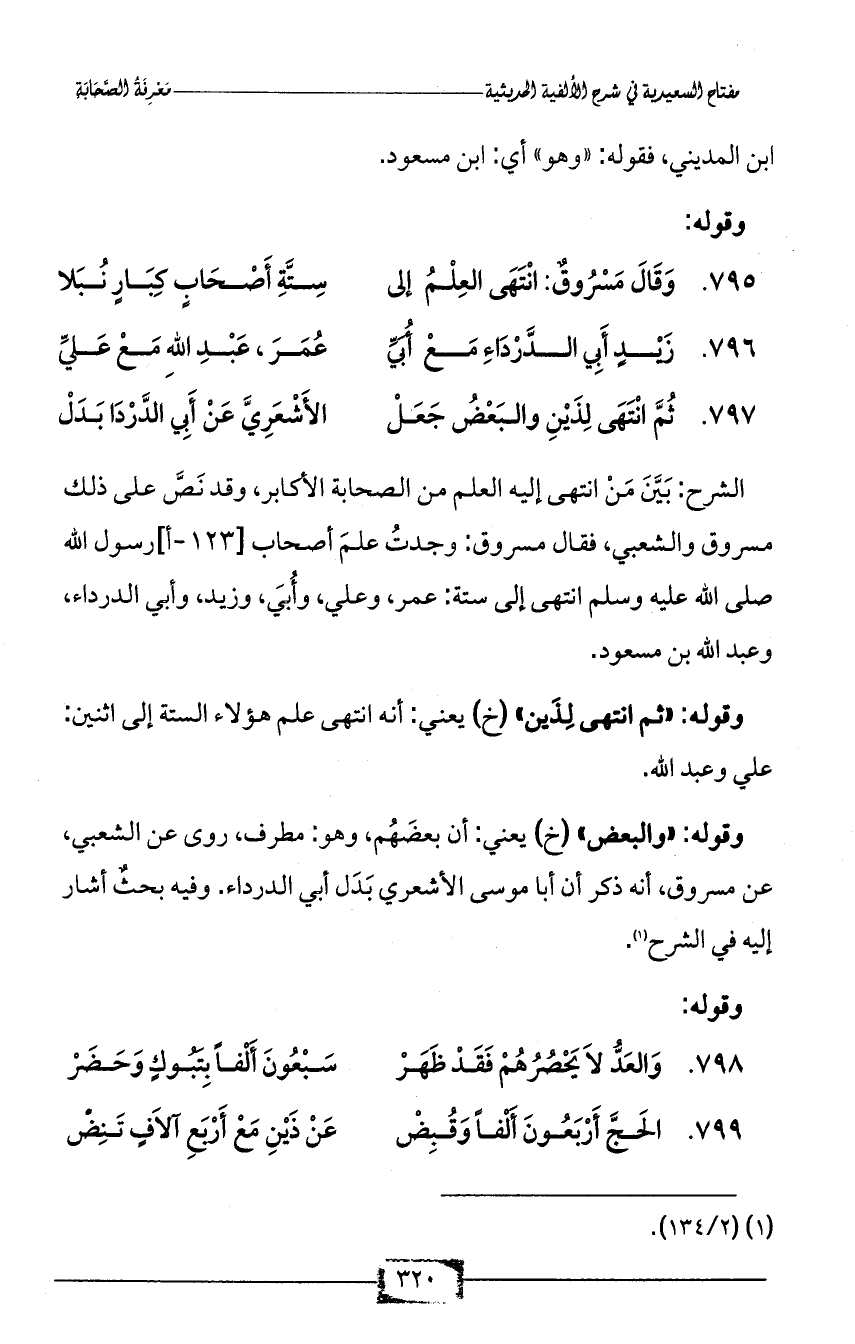 795 - وَقَالَ مَسْرُوقٌ: انْتَهَى العِلْمُ إلى ... سِتَّةِ أَصْحَابٍ كِبَارٍ نُبَلا