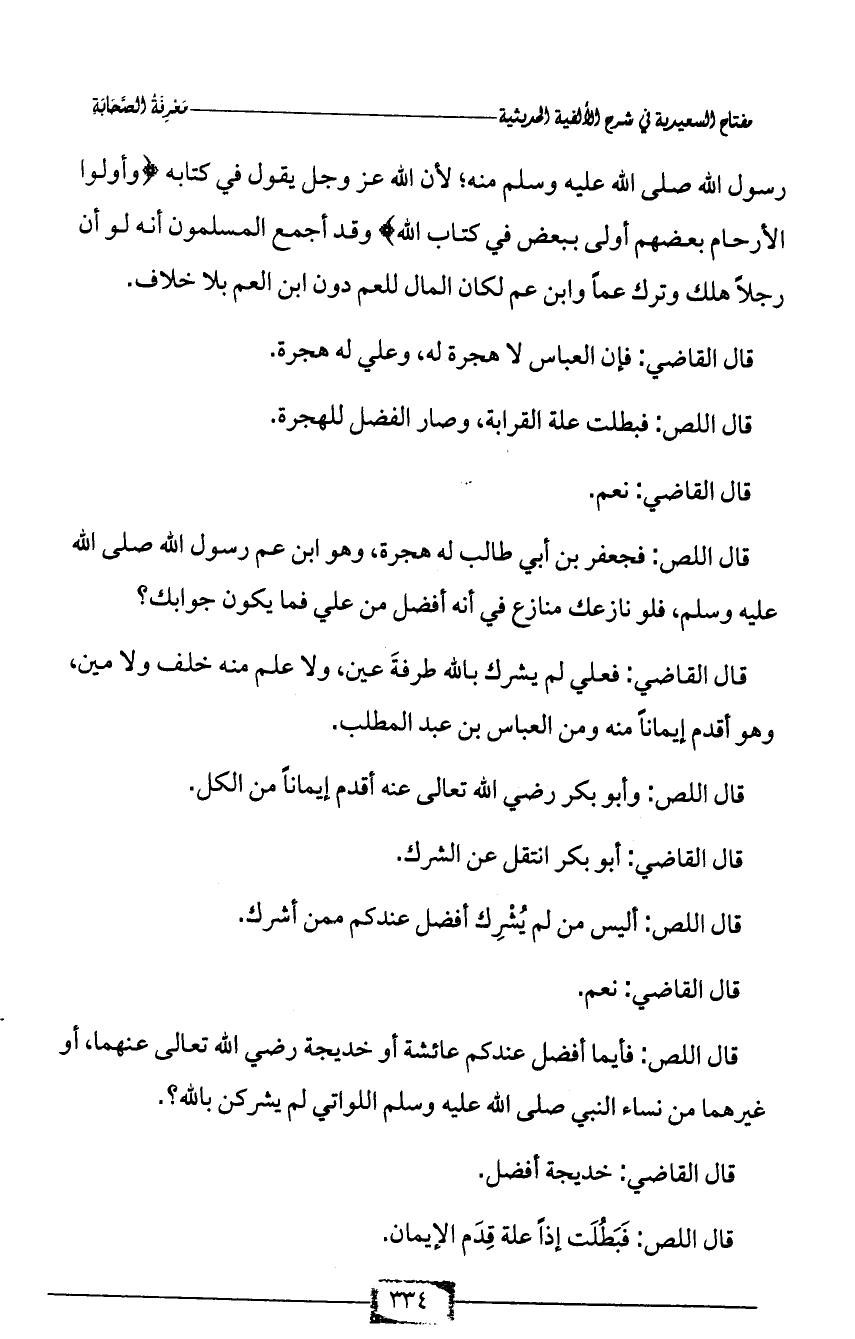 قال اللص: فبطلت علة القرابة، وصار الفضل للهجرة.