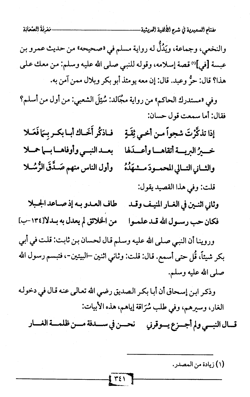 وفي «مستدرك الحاكم» من رواية مُجَالد: سُئِلَ الشعبي: من أول من أسلم؟ فقال: أما سمعت قول حسان: