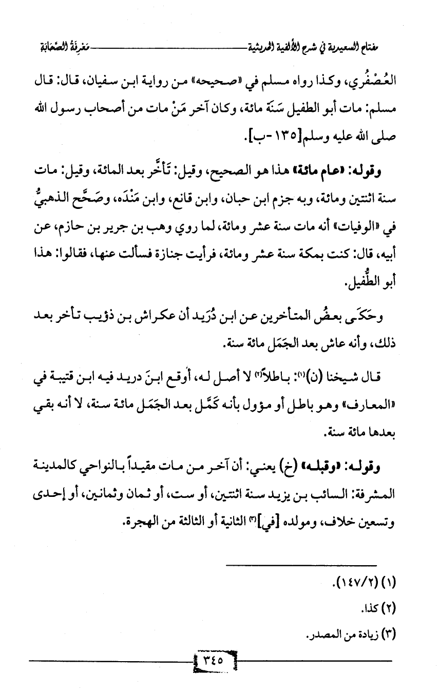 العُصْفُري، وكذا رواه مسلم في «صحيحه» من رواية ابن سفيان، قال: قال مسلم: مات أبو الطفيل سَنَة مائة، وكان آخر مَنْ مات من أصحاب رسول الله صلى الله عليه وسلم [135 - ب].