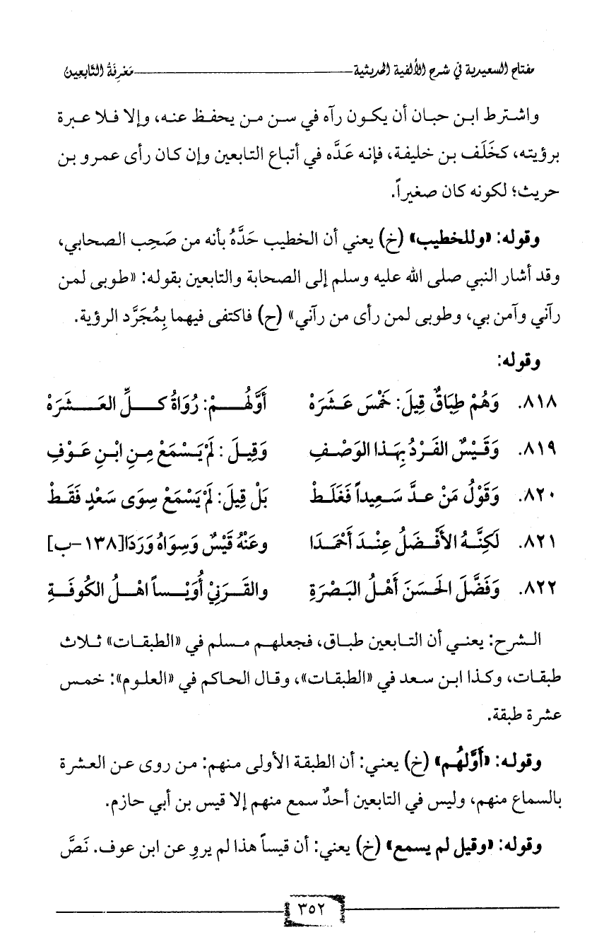 818 - وَهُمْ طِبَاقٌ قِيلَ: خَمْسَ عَشَرَهْ ... أَوَّلُهُمْ: رُوَاةُ كلِّ العَشَرَهْ