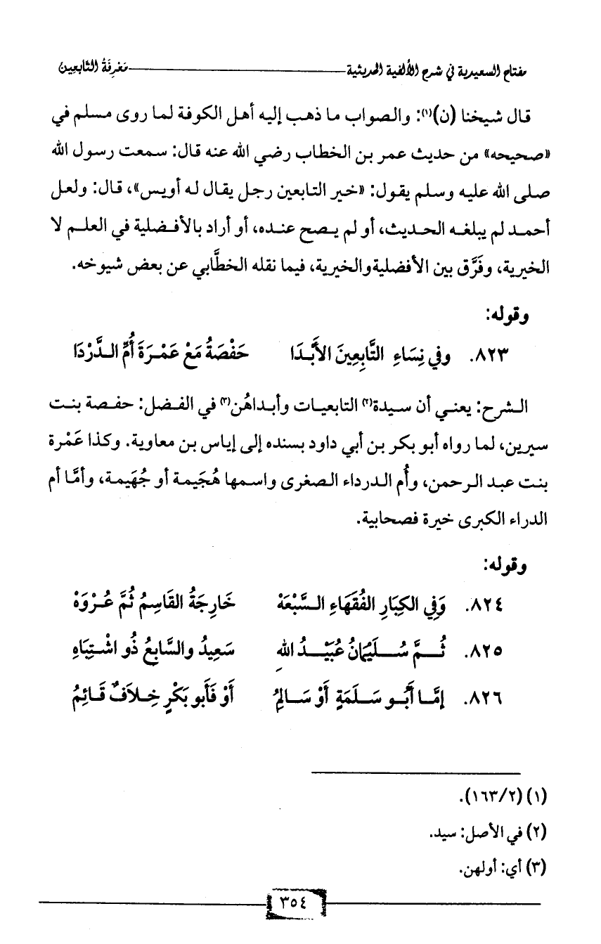 823 - وفي نِسَاءِ التَّابِعِينَ الأَبْدَا ... حَفْصَةُ مَعْ عَمْرَةَ أُمِّ الدَّرْدَا