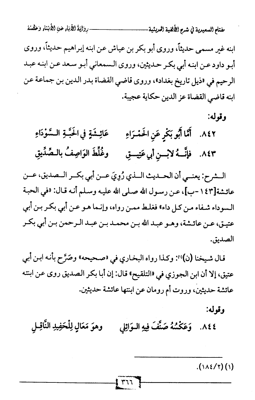 843 - فإنَّهُ لابْنِ أبي عَتِيقِ ... وغُلِّطَ الوَاصِفُ بالصِّدِّيق