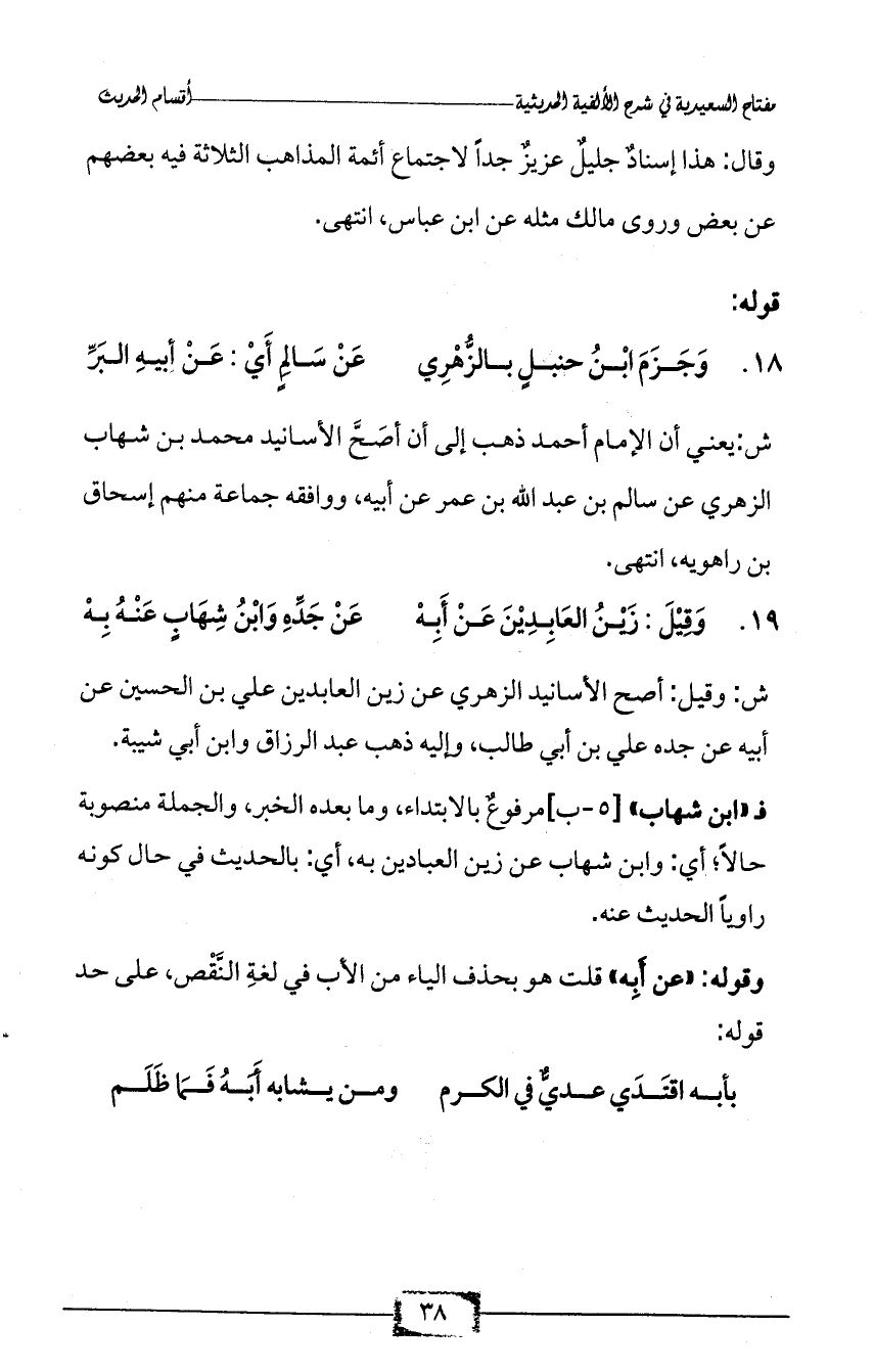19 - وَقِيْلَ: زَيْنُ العَابِدِيْنَ عَنْ أَبِهْ ... عَنْ جَدِّهِ وَابْنُ شِهَابٍ عَنْهُ بِهْ