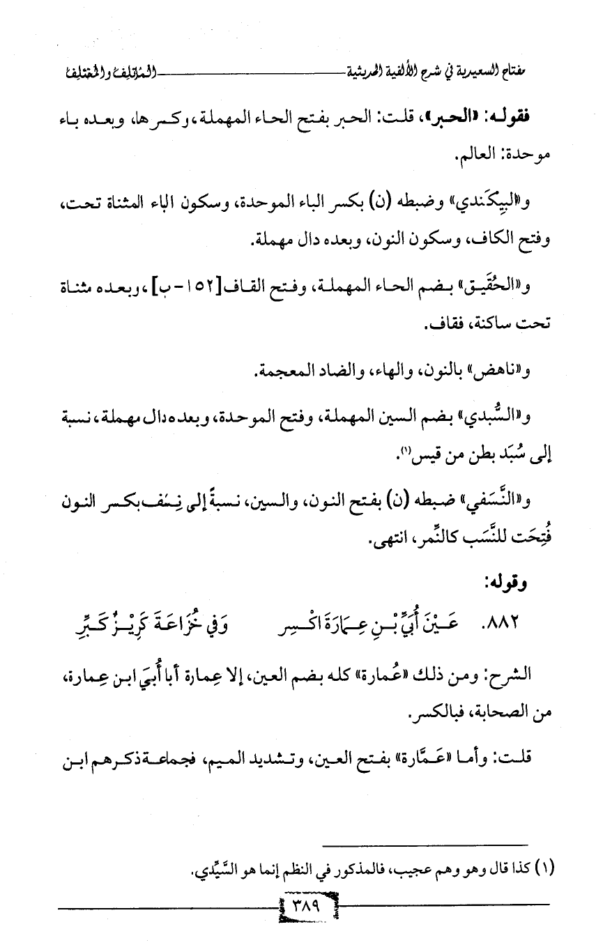 الشرح: ومن ذلك «عُمارة» كله بضم العين، إلا عِمارة أبا أُبَي ابن عِمارة، من الصحابة، فبالكسر.