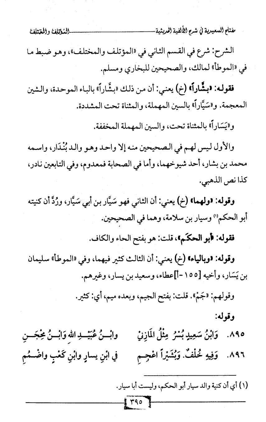 896 - وَفِيهِ خُلْفٌ. وَبُشَيْراً اعْجِمِ ... في ابْنِ يسارٍ وابْنِ كَعْبٍ واضْمُم