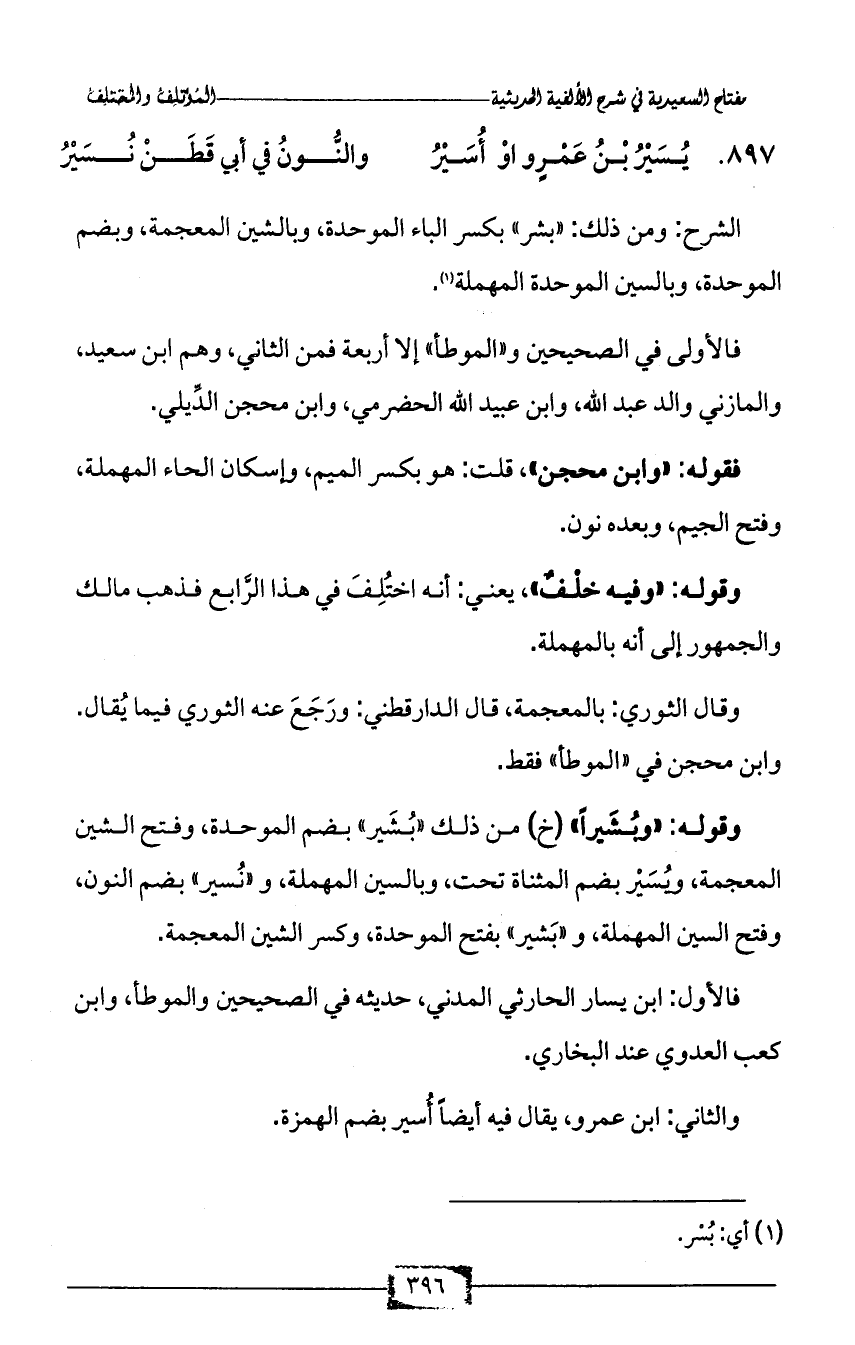 الشرح: ومن ذلك: «بشر» بكسر الباء الموحدة، وبالشين المعجمة، وبضم الموحدة، وبالسين الموحدة المهملة (¬1).