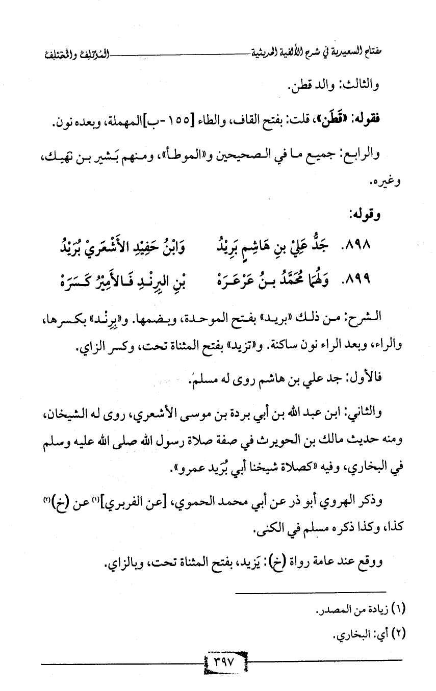 898 - جَدُّ عَلِيْ بنِ هَاشِمٍ بَرِيْدُ ... وَابْنُ حَفِيْدِ الأَشْعَريْ بُرَيْدُ