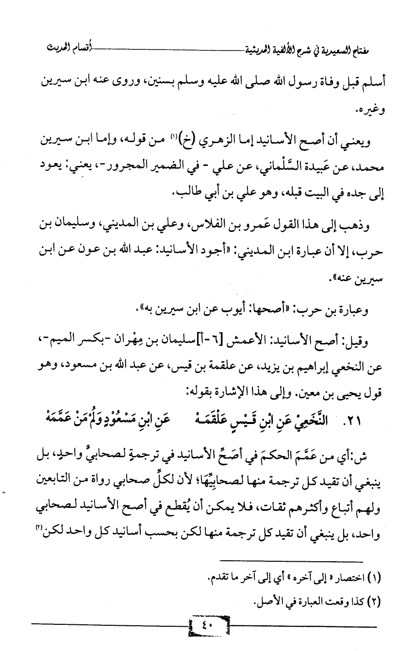 21 - النَّخَعِيْ عَنِ ابْنِ قَيْسٍ عَلْقَمَهْ ... عَنِ ابْنِ مَسْعُوْدٍ وَلُمْ مَنْ عَمَّمَهْ