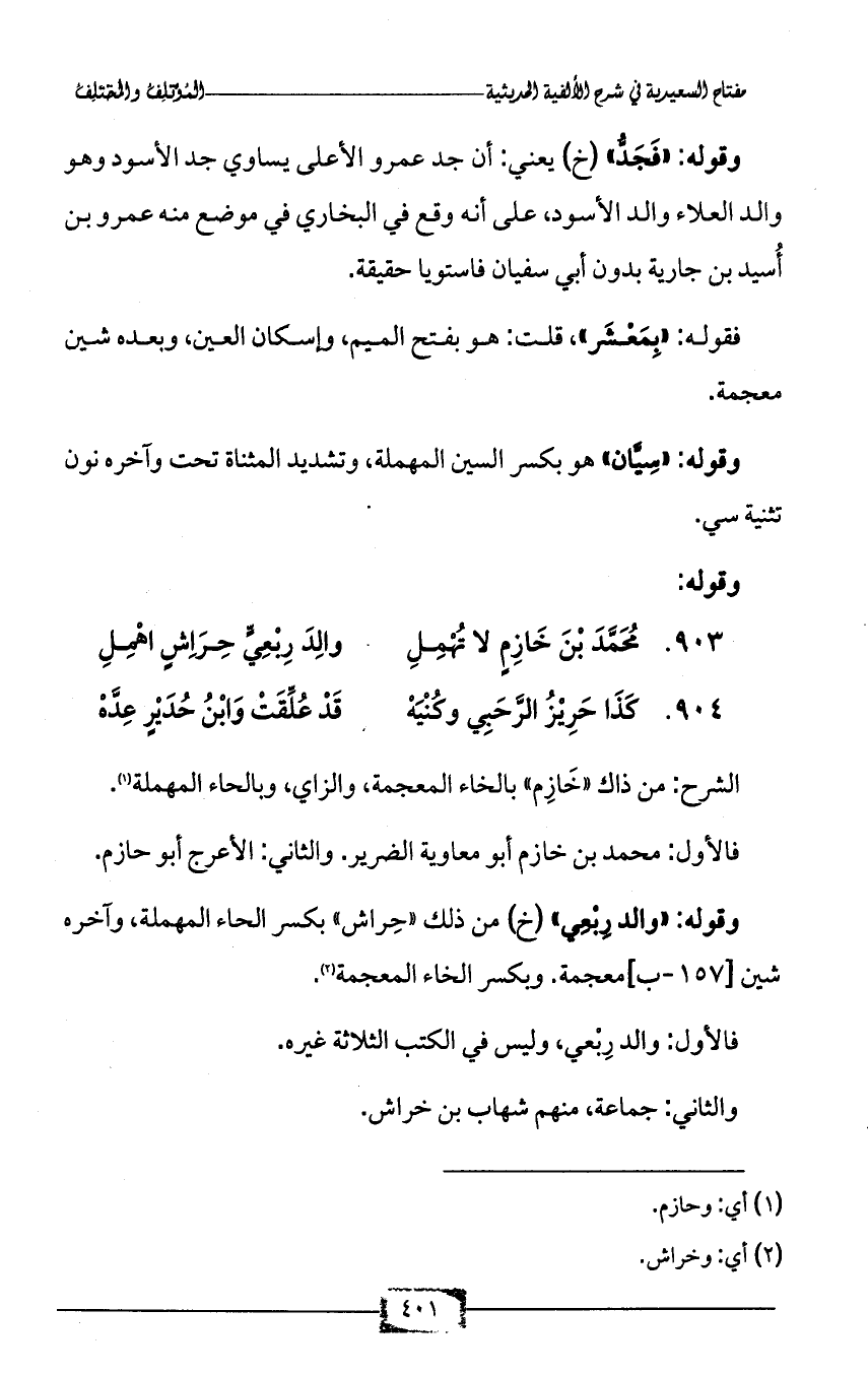 الشرح: من ذاك «خَازِم» بالخاء المعجمة، والزاي، وبالحاء المهملة (¬1).