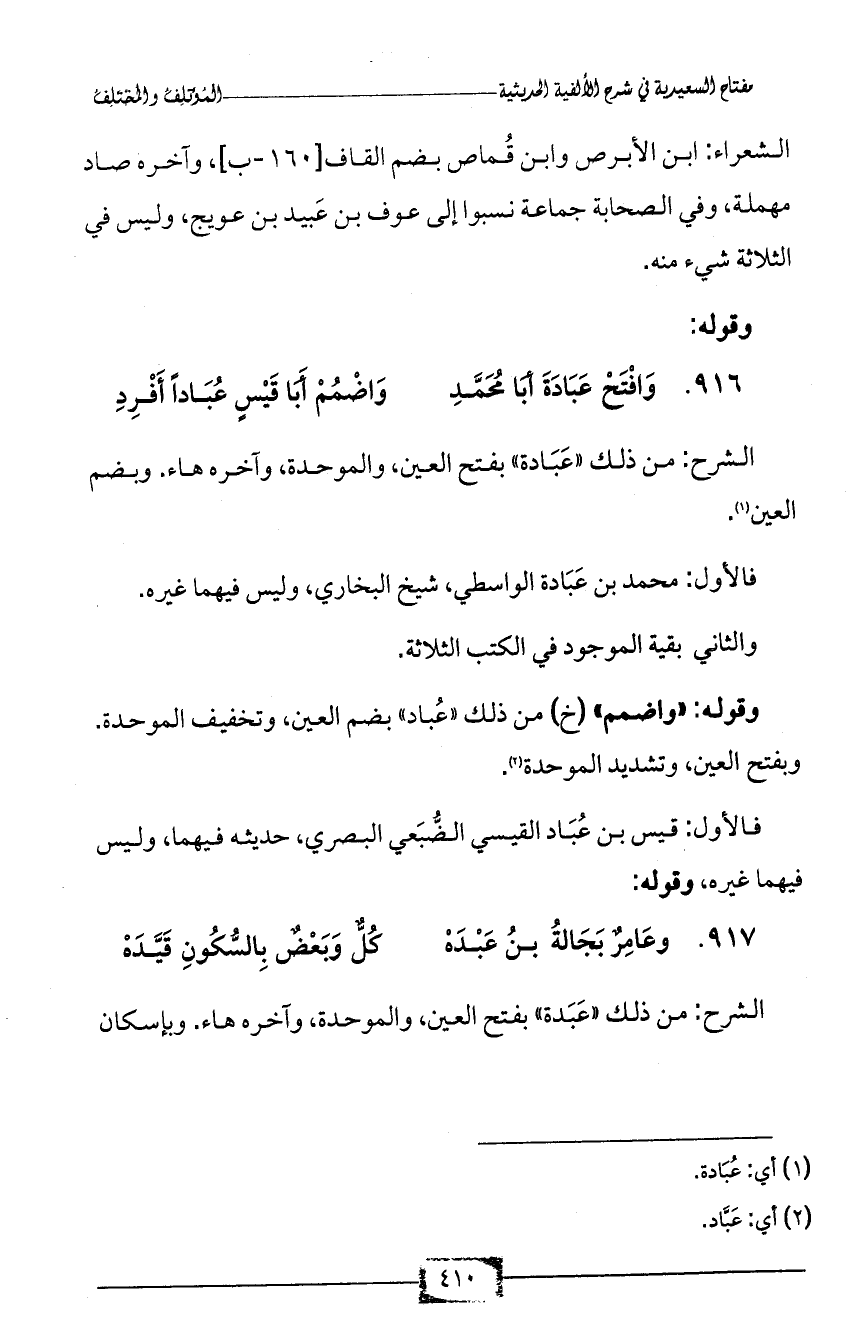 916 - وَافْتَحْ عَبَادَةَ أبَا مُحَمَّدِ ... وَاضْمُمْ أَبَا قَيْسٍ عُبَاداً أَفْرِد