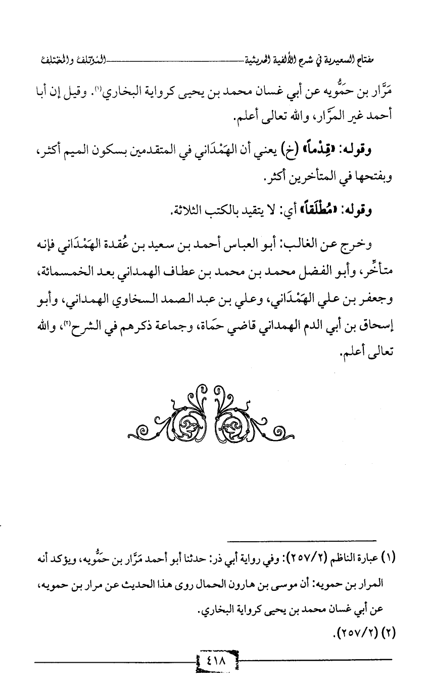 وخرج عن الغالب: أبو العباس أحمد بن سعيد بن عُقدة الهَمْدَاني فإنه متأخِّر، وأبو الفضل محمد بن محمد بن عطاف الهمداني بعد الخمسمائة، وجعفر بن علي الهَمْدَاني، وعلي بن عبد الصمد السخاوي الهمداني، وأبو إسحاق بن أبي الدم الهمداني قاضي حَماة، وجماعة ذكرهم في الشرح (¬2)، والله تعالى أعلم.