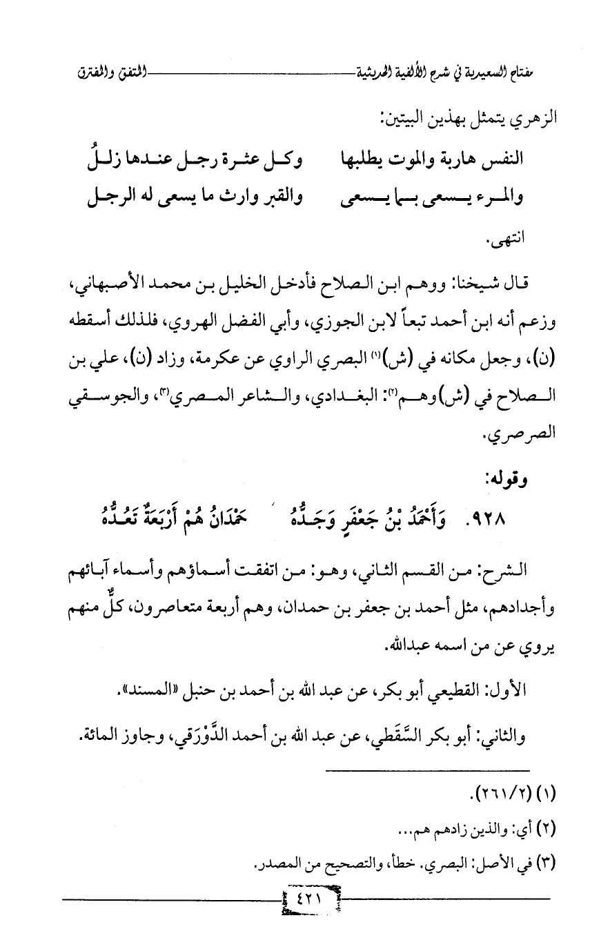 928 - وَأَحْمَدُ بْنُ جَعْفَرٍ وَجَدُّهُ ... حَمْدَانُ هُمْ أَرْبَعَةٌ تَعُدُّهُ