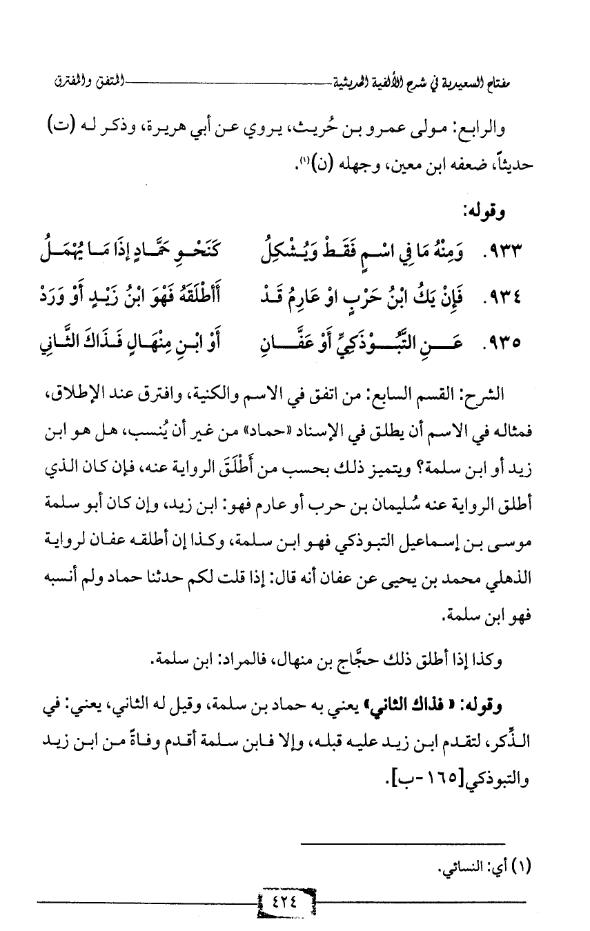 935 - عَنِ التَّبُوْذَكِيِّ أَوْ عَفَّانِ ... أَوْ ابْنِ مِنْهَالٍ فَذَاكَ الثَّانِي