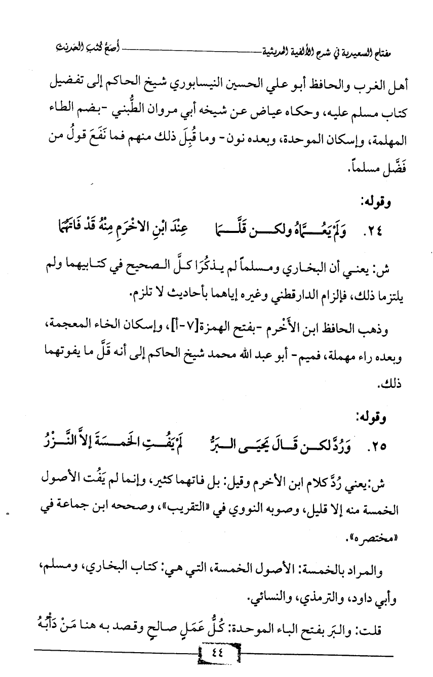 25 - وَرُدَّ لكن قَالَ يَحيَى البَرُّ ... لَمْ يَفُتِ الخَمسَةَ إلاَّ النَّزْرُ