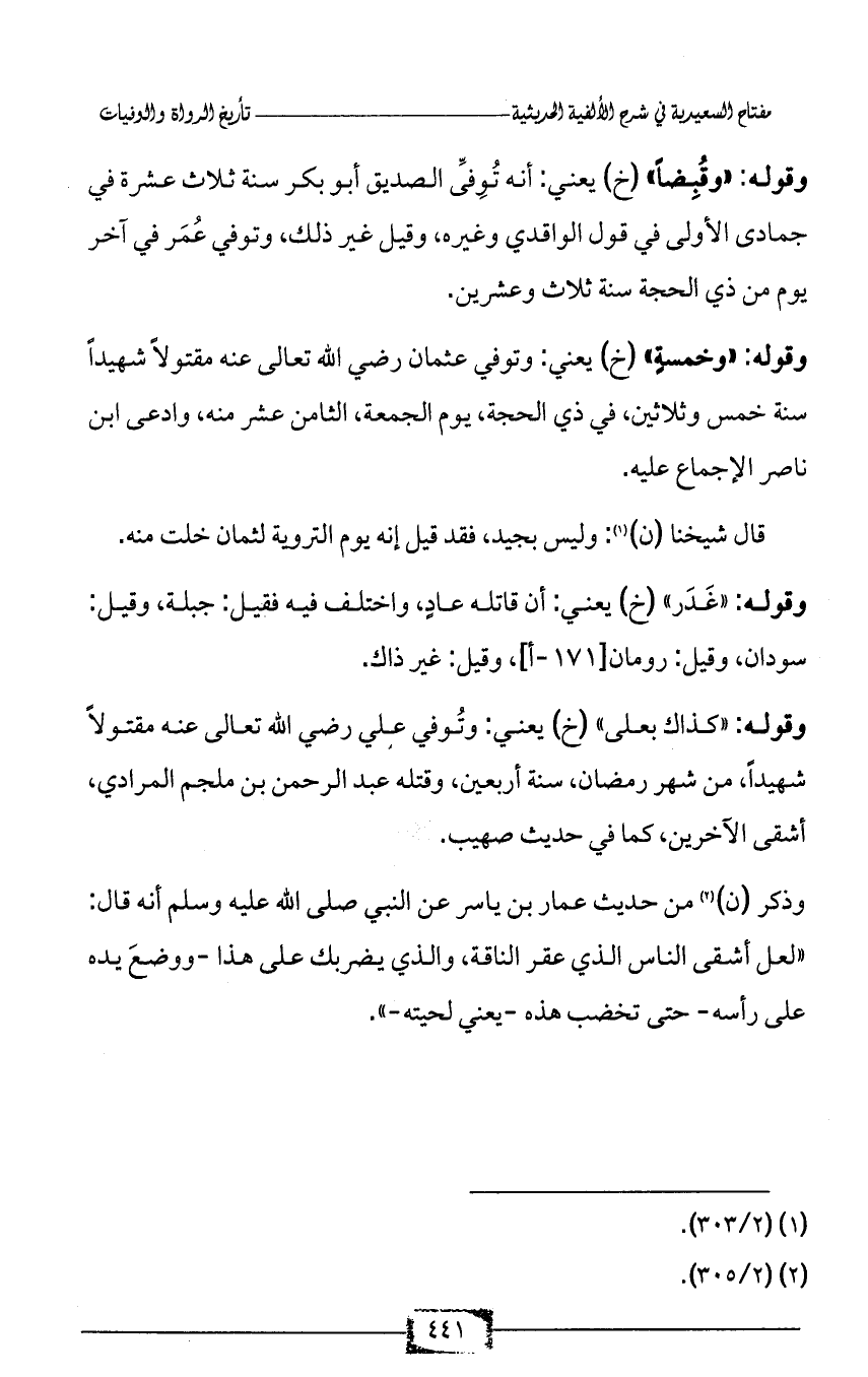 وذكر (ن) (¬2) من حديث عمار بن ياسر عن النبي صلى الله عليه وسلم أنه قال: «لعل أشقى الناس الذي عقر الناقة، والذي يضربك على هذا -ووضعَ يده على رأسه- حتى تخضب هذه -يعني لحيته-».