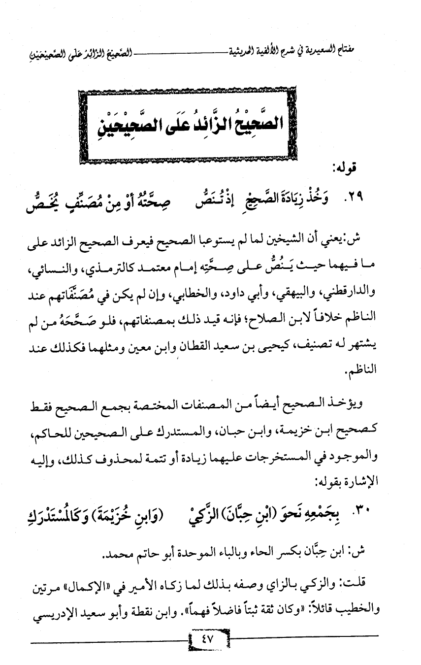 30 - بِجَمْعِهِ نَحوَ (ابْنِ حِبَّانَ) الزَّكِيْ ... (وَابنِ خُزَيْمَةَ) وَكَالمُسْتَدْرَك