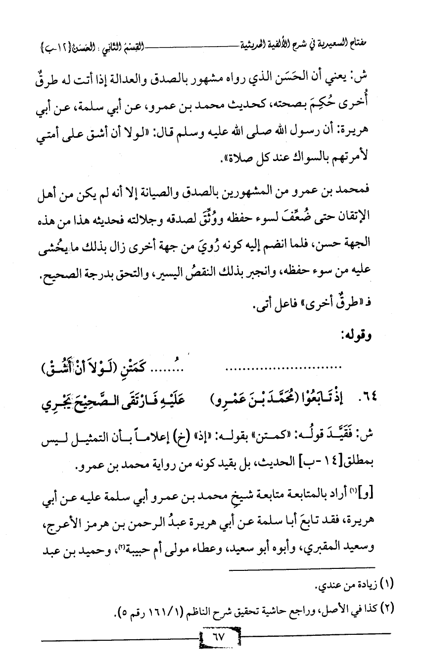 64 - إذْ تَابَعُوْا (مُحَمَّدَ بْنَ عَمْرِو) ... عَلَيْهِ فَارْتَقَى الصَّحِيْحَ يَجْرِي