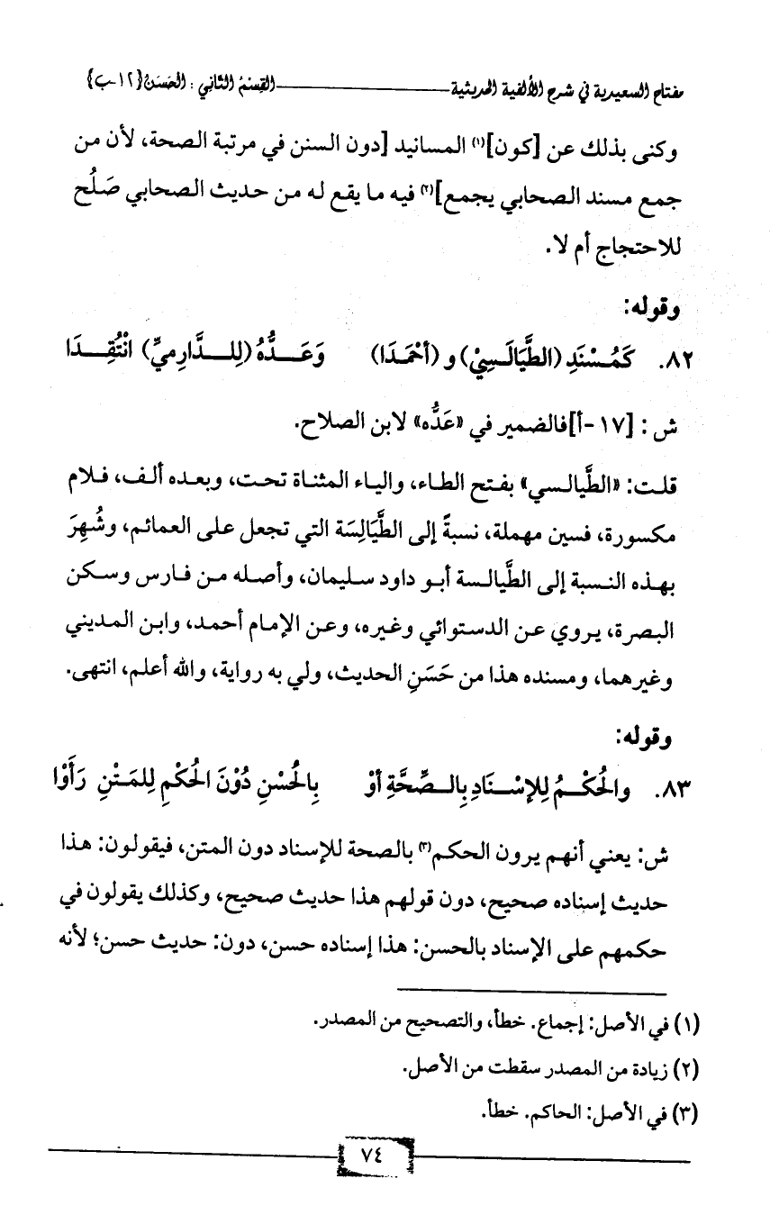 82 - كَمُسْنَدِ (الطَّيَالَسِيْ) و (أحْمَدَا) ... وَعَدُّهُ (لِلدَّارِميِّ) انْتُقِدَا