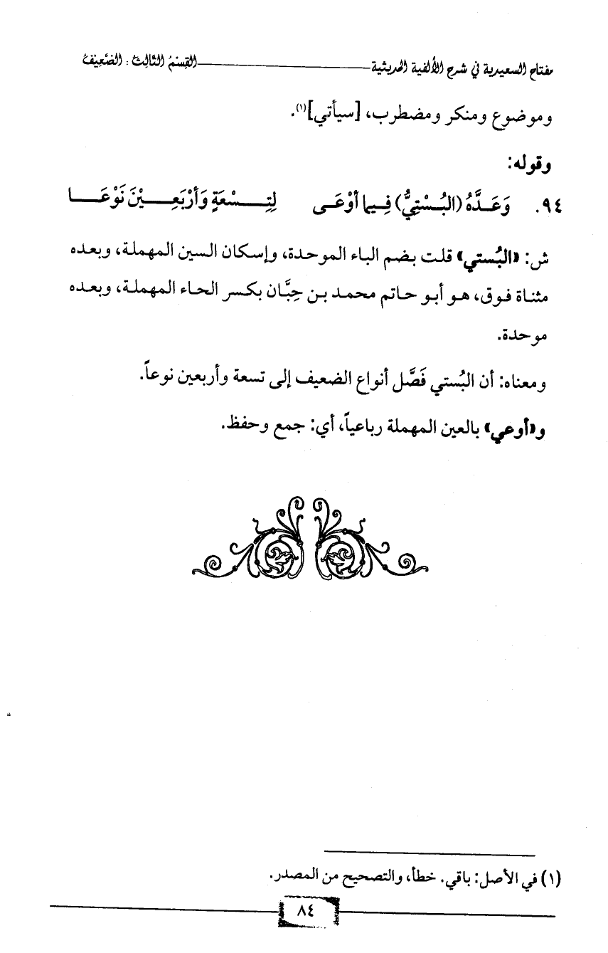 ومعناه: أن البُستي فَصَّل أنواع الضعيف إلى تسعة وأربعين نوعاً.