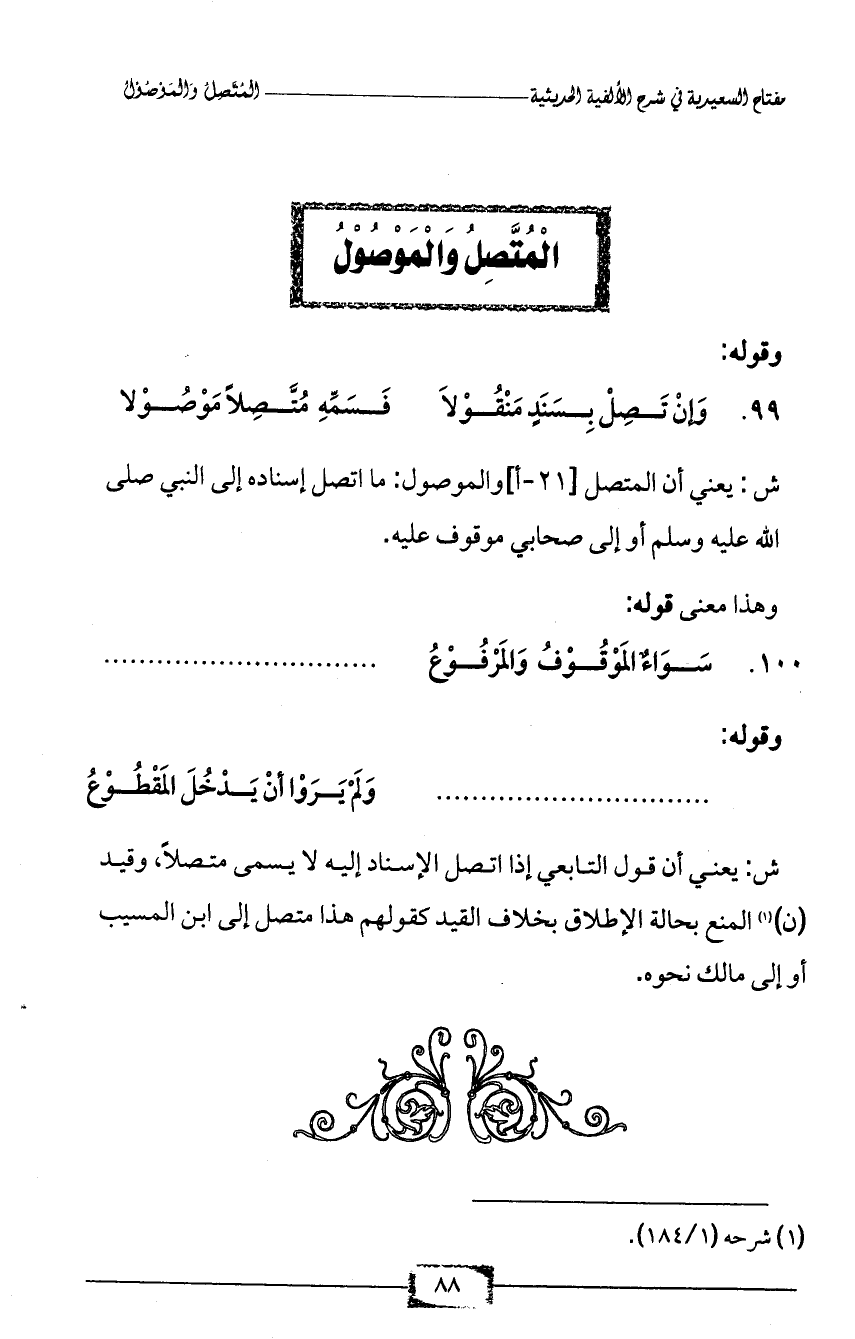 ش: يعني أن المتصل [21 - أ] والموصول: ما اتصل إسناده إلى النبي صلى الله عليه وسلم أو إلى صحابي موقوف عليه.