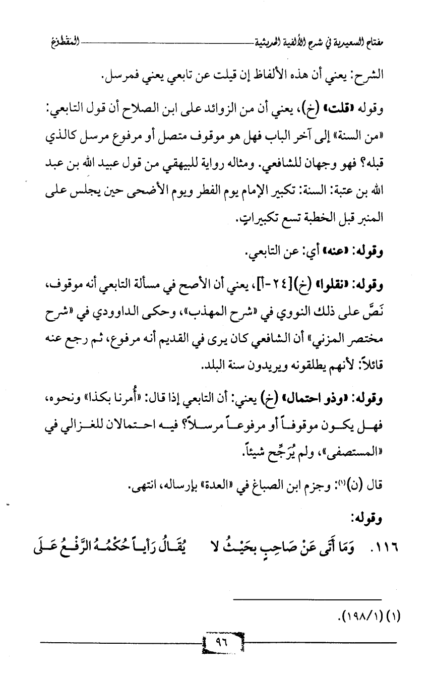 116 - وَمَا أَتَى عَنْ صَاحِبٍ بحَيْثُ لا ... يُقَالُ رَأياً حُكْمُهُ الرَّفْعُ عَلَى