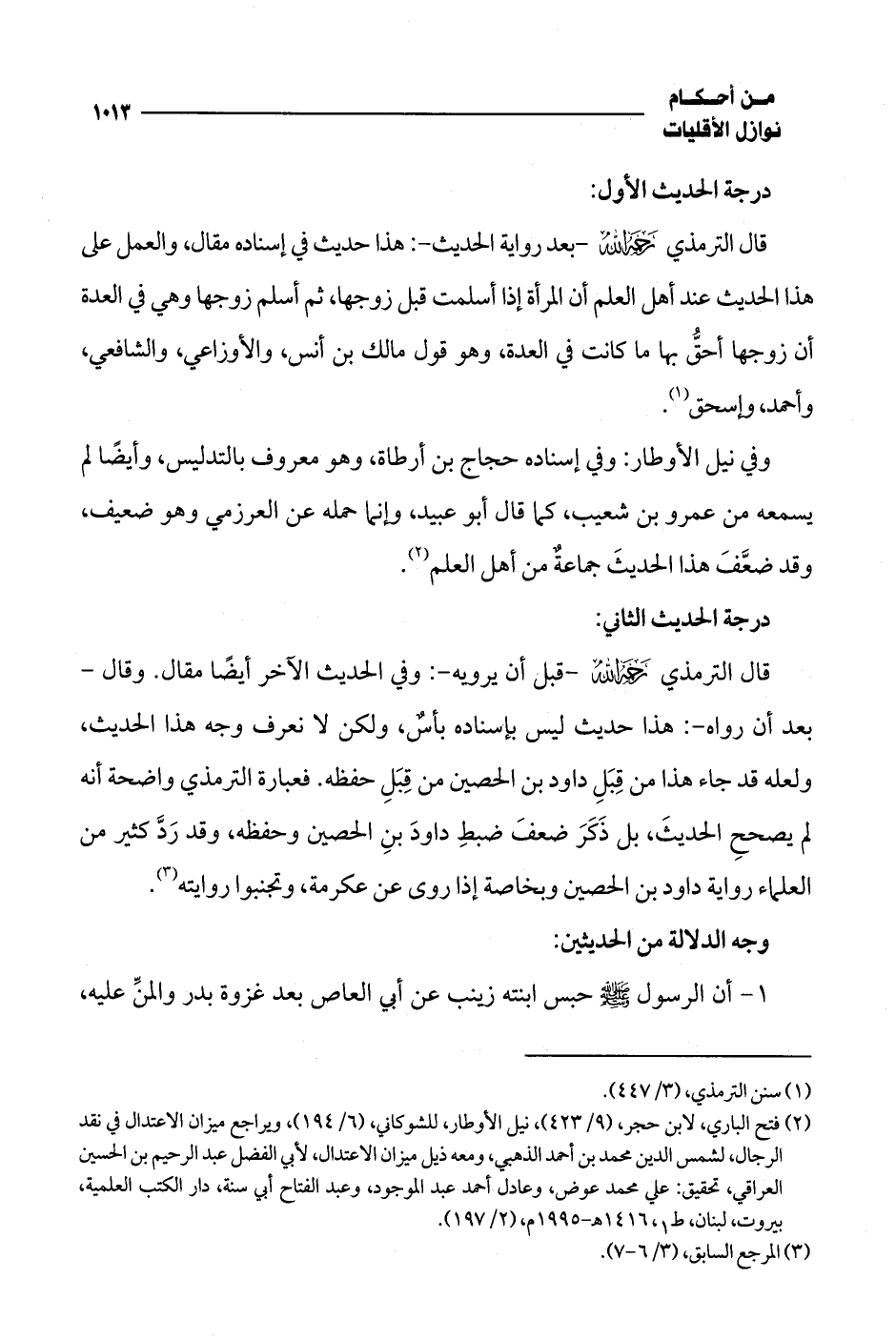 (¬2) فتح الباري، لابن حجر، (9/ 423)، نيل الأوطار، للشوكاني، (6/ 194)، ويراجع ميزان الاعتدال في نقد الرجال، لشمس الدين محمد بن أحمد الذهبي، ومعه ذيل ميزان الاعتدال، لأبي الفضل عبد الرحيم بن الحسين العراقي، تحقيق: علي محمد عوض، وعادل أحمد عبد الموجود، وعبد الفتاح أبي سنة، دار الكتب العلمية، بيروت، لبنان، ط 1، 1416 هـ - 1995 م، (2/ 197).